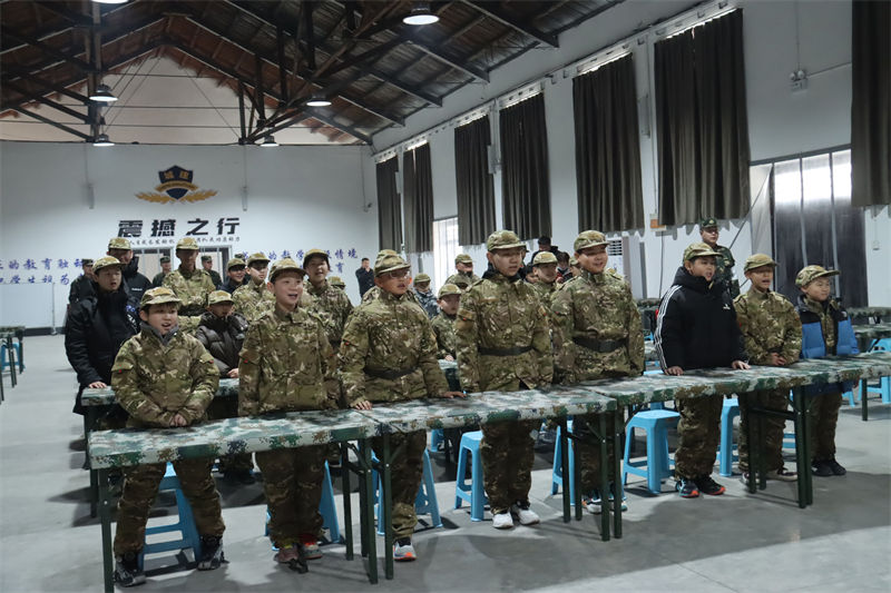充满期待入营 到达营地后,在专业教官的指导下火速“集结”,他们拿着各自的行李箱走进营房,换上了统一的迷彩服,成为了一名“小小特种兵”,他们个个神采奕奕,在为期五天四夜的研学拓展旅行中,这些小营员们将一同感受“营地”的魅力。