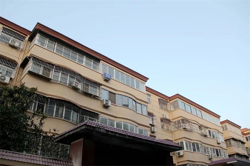 该小区共有两栋居民楼,都是5层建筑。何翠云所居住的居民楼已完成外墙漆喷涂工作,整座楼房一楼、五楼外墙为酒红色,中间3层为黄色,美观大方,干净整洁,同时强弱电线路规整,给人以视觉享受。