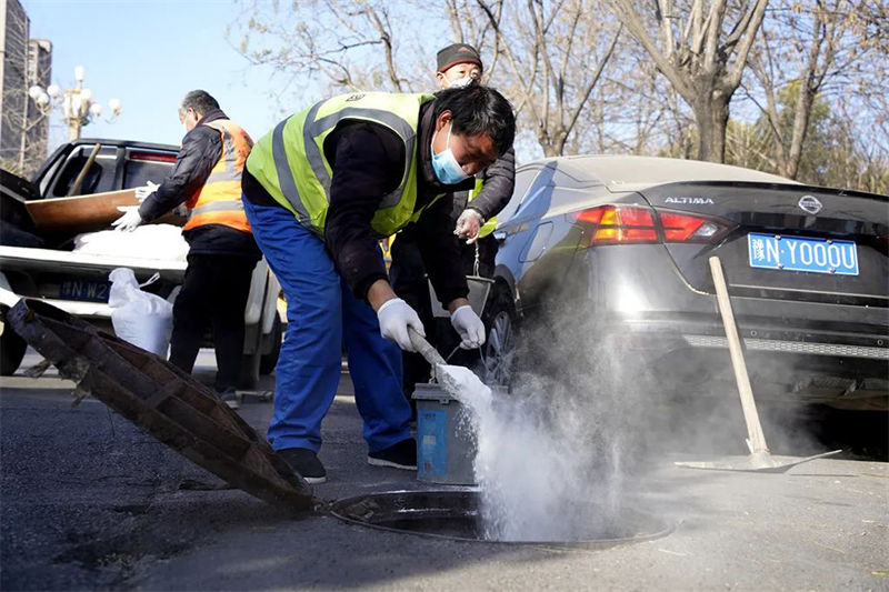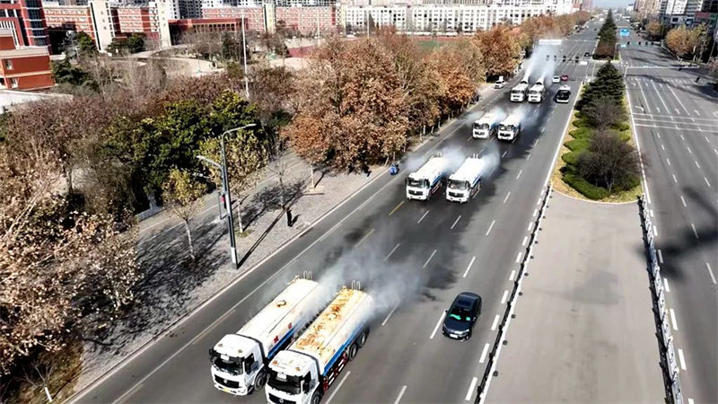 “上下联动”,确保全面消杀。永城市城建集团出动多台雾炮车、洒水车针对城区重点区域、主次干道、人行道等公共区域进行消毒消杀,以减少细菌和病毒的传播,并结合地下管网消杀,形成“上下联动、点面结合、不留死角、全面消杀”的效果。