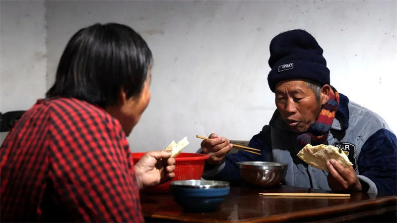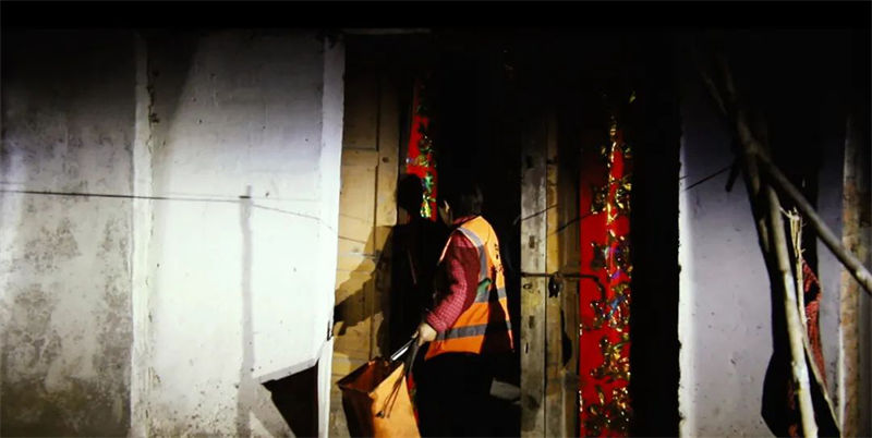 当清晨的第一缕阳光洒落大地,乡村逐渐从睡梦中醒来时,她已经完成了第一遍的清扫工作,开始了跟老伴儿的早饭时间。一碗稀饭,一个油饼,是老两口一天中最幸福的时刻。