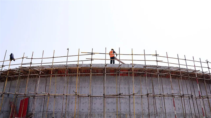 眼下,正值建设项目的施工黄金期。走进第二污水处理厂扩容改建项目现场,伴随着焊花的飞溅、钢筋的碰撞,市城建集团项目部正加足马力,精耕细作,火热施工,机器与工人相互配合的繁忙场景随处可见,一排排高耸的“钢筋森林”拔地而起,建设中的巨型圆柱状沉淀池颇为壮观。