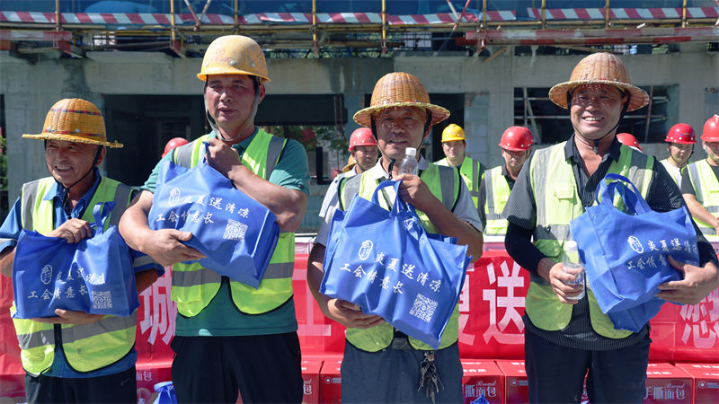 7月5日,永城市委副书记常忠伟,永城市委常委、统战部部长、副市长胡淼,永城市总工会党组书记、常务副主席冯丽娟一行不畏酷暑到城建集团八中建设项目施工现场,为一线职工送关怀。城建集团党委书记、董事长朱波,城建集团党委委员、常务副总经理苏伟,副经理王艳峰陪同慰问。