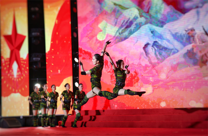 为热烈庆祝建军96周年,回顾中国军人走过的光辉历程,歌颂中国人民解放军的丰功伟绩和辉煌成就,展现新时代双拥共建成果,唱响军民融合发展的主旋律。7月31日晚,由中共永城市委宣传部、市人武部主办,市城建集团承办,市退役军人事务局、市公安局、市消防大队协办的“中国梦.强军梦”永城市庆“八一”军民融合双拥文艺汇演在葛店综合研学实训营地举行。市委副书记、代市长刘建龙,市领导常忠伟、王琴芝、丁振波、巫照参、朱建光、徐永超、贾晓晖、程峰等共同观看演出。各相关单位全体干部职工及家属到场观看文艺汇演。