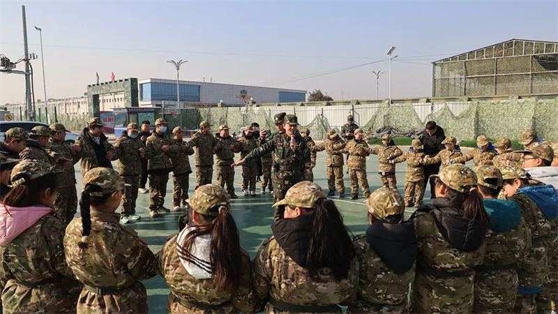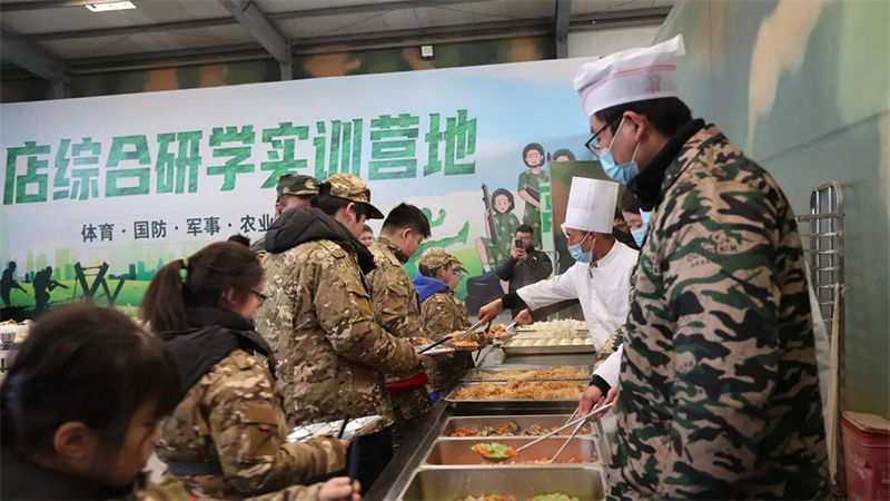 宽阔的训练场上,孩子们身着迷彩服,整齐列队,在教官的指导下,依次体验了超越式军训、破冰、火箭筒、迫击炮、消防课程、抢球大战、激光打靶、摧毁暗堡、彩虹滑道、驾驶小坦克等丰富多彩的特色课程。午饭前,孩子们还齐诵餐前训导,谨记“一粥一饭当思来之不易”。