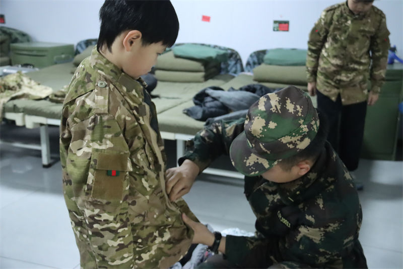 充满期待入营 到达营地后,在专业教官的指导下火速“集结”,他们拿着各自的行李箱走进营房,换上了统一的迷彩服,成为了一名“小小特种兵”,他们个个神采奕奕,在为期五天四夜的研学拓展旅行中,这些小营员们将一同感受“营地”的魅力。