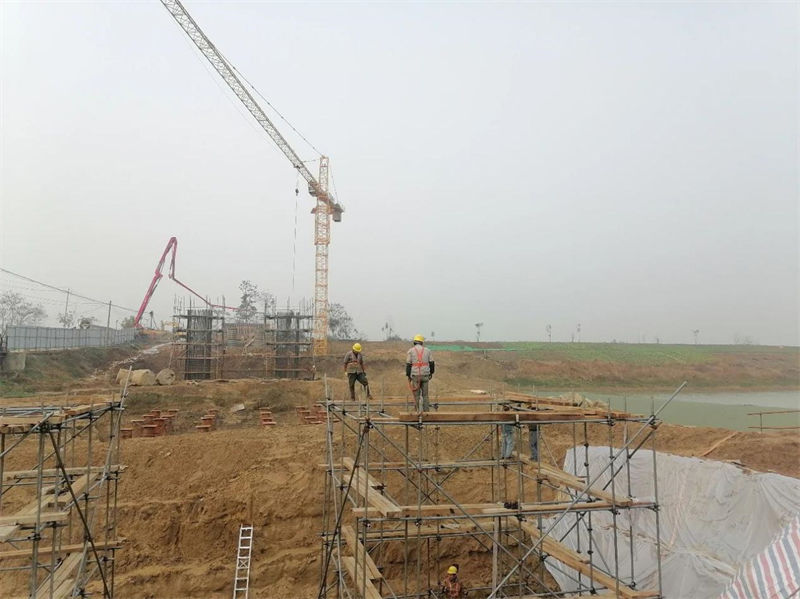 沱浍河(永城段)航运工程——闸四桥建设项目自全面启动以来,市城建集团抢抓工期,加快项目建设进度,不断推进该项惠民工程建设,努力为周边群众的出行创造有利条件。 11月27日,记者在位于蒋口镇境内的蒋口桥项目施工现场看到,三十多名工人正在紧张而有序地进行路基施工工作,现场机器轰鸣,整个工程建设正在如火如荼地进行着。大桥已建成的数个桥墩在沱河水面上直直挺立,成为一道独特的风景线。“我们自9月28日开工以来,目前已经完成全部的水下桩工作,三号台也已经建设完成,工程进度是总进度的20%。目前正在进行的是桥梁主墩钢筋工程。其他项目进程也在按计划进行前期准备工作,做勘察、设计,我们会按照原计划陆续完成桥梁建设的各项工作,方便群众出行。”市城建集团副经理陈扎根告诉记者。