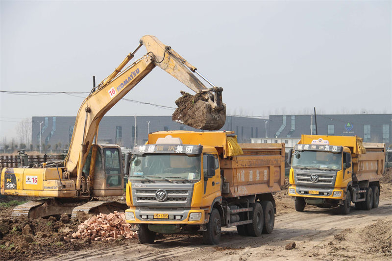 为方便居民出行,我市正在修建一条新的道路---碱河路,碱河路全长1682米,主路宽18米,两侧各4米人行道,包含路灯亮化、雨水、污水、及给水管网,西接芒山路,东接中原路,目前已全面开展建设作业,城建集团共出动技术员2名施工班组60余人,四台大型挖掘机以及10余辆渣土车正在进行施工作业。