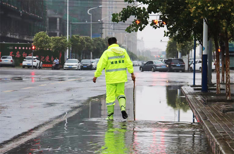自2021年6月14日以来,河南省商丘市永城市连降大雨。永城市城建集团闻“汛”而动,主动担当,连夜组织干部职工奔赴到防汛一线,全力以赴打赢防汛关键仗。 杨晨 摄