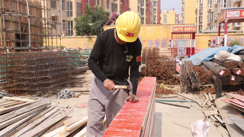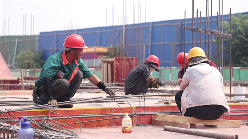 2021年6月16日,记者在我市安置房工程朱小庄项目现场看到,这里到处呈现塔吊林立、车辆穿梭的建设场面,建设工人们正在头顶烈日加紧施工。他们有的在操作钢筋调直机,有的在配合塔吊吊装材料,有的在搬运建筑钢筋和木板,而在距离地面十几米的高楼上,他们腰间别着各类工具,在钢筋的丛林中自如穿梭。项目建设现场热火朝天。