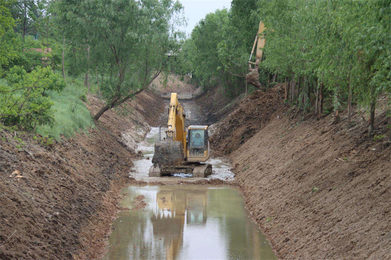 为及时推进对侯岭大治沟清淤整治工作,自4月26日进场以来,共投入七辆大型挖掘机,两辆推土机,采用机械打捞为主、人工打捞为辅的方式,对大治沟河道进行全面清理整治。此次大治沟河道整治,预计新建六座桥梁,对三座老旧桥梁进行维修翻新,并修建蓄水大坝。连日来,集团施工成员分工明确,起早带晚不怕脏、不怕累,互相配合将河道残留的树干和生活垃圾等进行清理。目前,河道截断部分已抽水完成,队员们正在进行河底清淤工作……