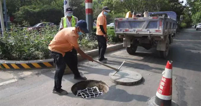 防坠网为尼龙材质,防潮、防腐蚀性强,安装在井口处可起到防人坠井的作用。为防止汛期坠井事故发生,连日来,市城建集团在对城区窨井盖全面排查的基础上,对所有窨井盖进行逐一加装或更换防坠网,进一步提高了安全防护能力。