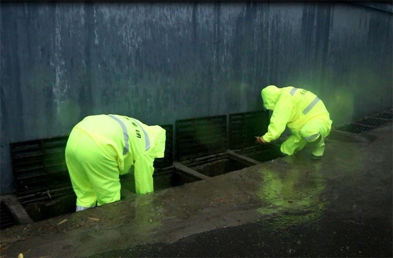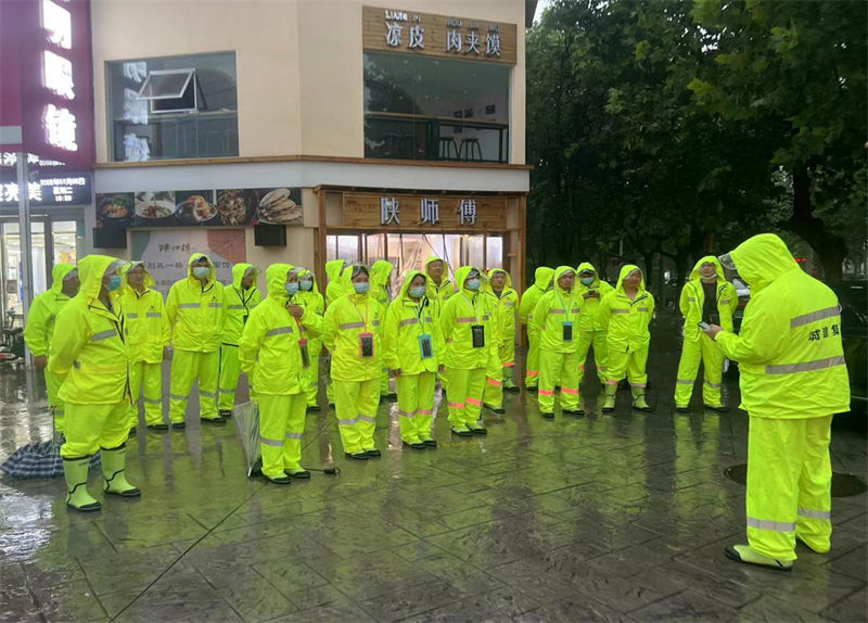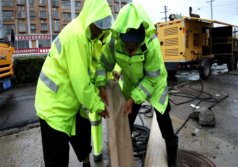 在城建集团党委书记、董事长朱波指挥调度下,各防汛区域路段人员迅速集结,按照既定的防汛点快速到位,防汛人员不怕脏、不怕累,徒手清掏堵在下水道口、井篦上面的杂草、落叶等阻水物,加速周边路面雨水排放。在积水情况较严重的路段,排水抢险车迅速投入工作进行抽排水。