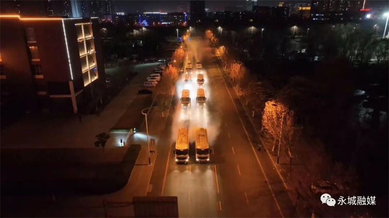 “上下联动”,确保全面消杀。永城市城建集团出动多台雾炮车、洒水车针对城区重点区域、主次干道、人行道等公共区域进行消毒消杀,以减少细菌和病毒的传播,并结合地下管网消杀,形成“上下联动、点面结合、不留死角、全面消杀”的效果。