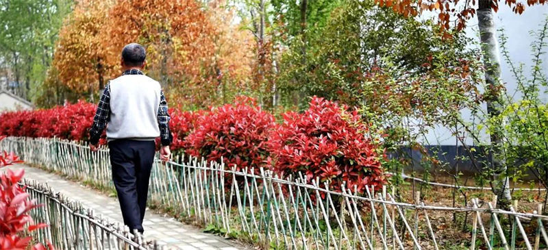 夕阳西下,柏山村披上了一层梦幻般金黄色的光晕,村民们惬意地闲谈遛弯,享受美好乡村生活。看着自己的劳动成果,丁培英也开心地笑了。